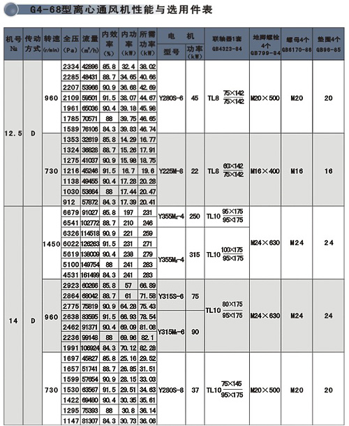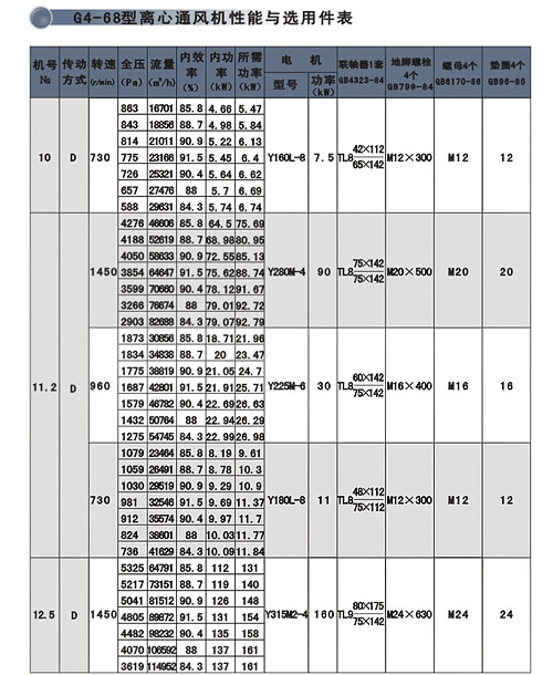 | G4-68、Y4-68型離心通、引風(fēng)機(jī)系本公司在行業(yè)聯(lián)合設(shè)計(jì)基礎(chǔ)上,引進(jìn)日本ミツヤ公司的先進(jìn)技術(shù)改進(jìn)設(shè)計(jì)而成。該系列風(fēng)機(jī)適用于火力發(fā)電廠中230t/h以下蒸汽鍋爐的通、引風(fēng)配套,在無(wú)其它特殊要求時(shí),G4-68型風(fēng)機(jī)亦可用于礦井通風(fēng)及一般通風(fēng)。 此兩系列風(fēng)機(jī)均制成單吸式,各有№8-16共7個(gè)機(jī)號(hào),每種風(fēng)機(jī)的出風(fēng)角度又可制成0o、45o、90o、135o、180o、225o共六種,其傳動(dòng)方式為D式,電動(dòng)機(jī)與風(fēng)機(jī)聯(lián)接采用彈性聯(lián)軸器直接傳動(dòng)。 |